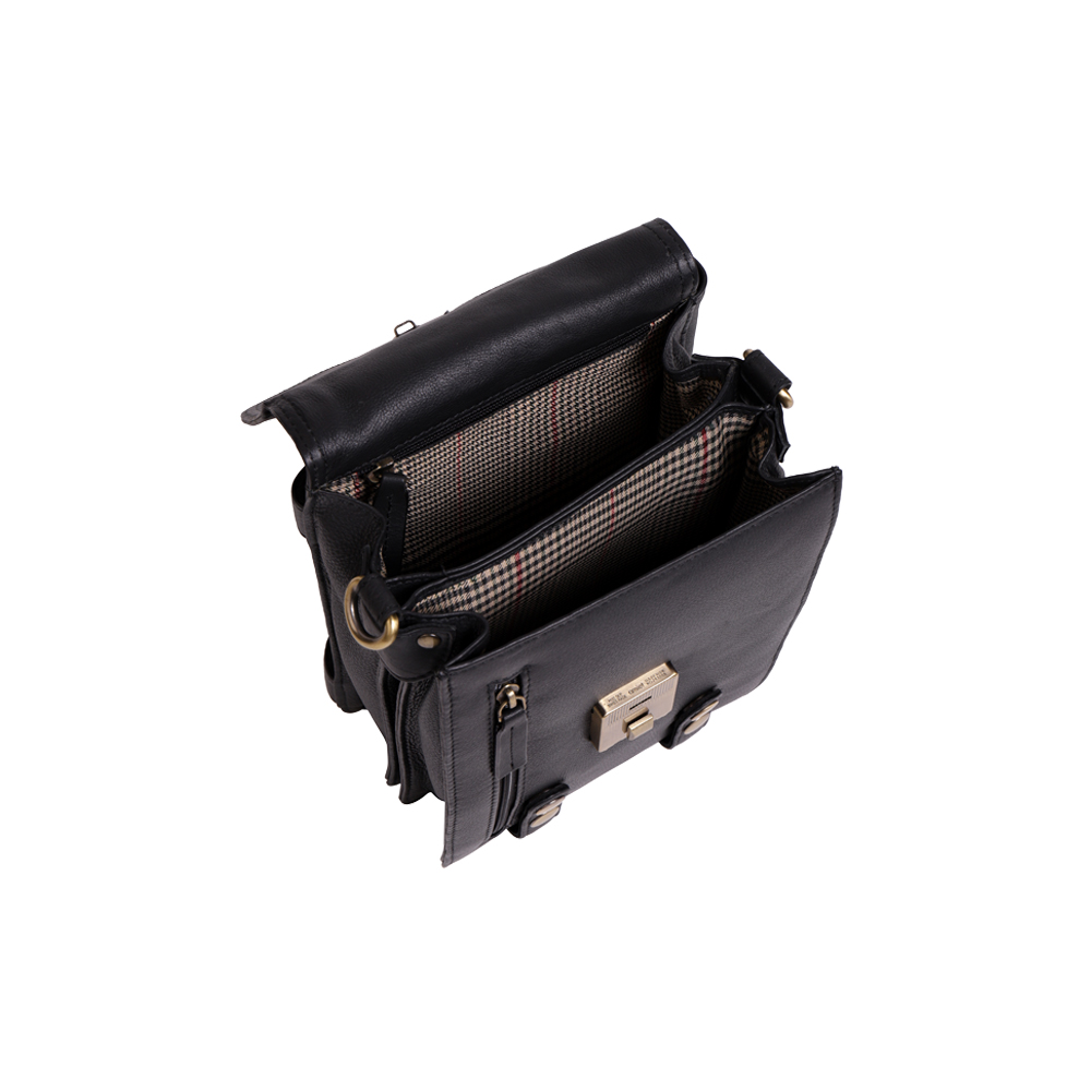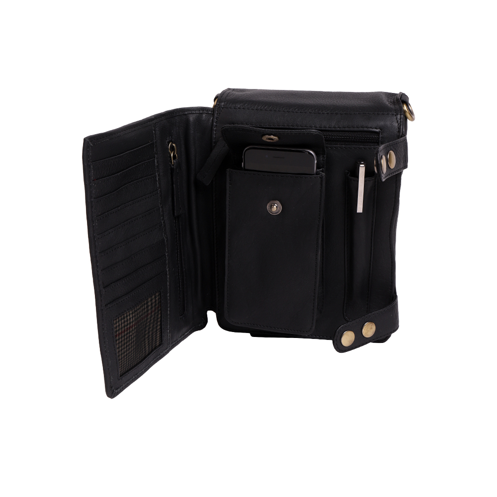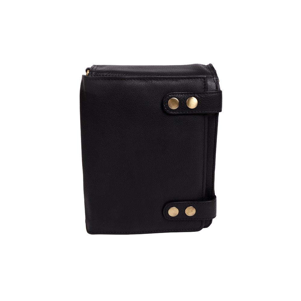 Comes with a brass combination lock to protect your valuables has two main compartments and has one extra zipper pocket at the back wall. The front four brass tab buttons after opening give amazing zipper pockets to slide some papers or valuables. This bag can carry a variety of things like cards (separate space), cell phones (separate space), boarding passes (separate space), checkbooks, and pens (with specially designed pen holders). All brass fittings are crafted by hand with solid and hardened brass.